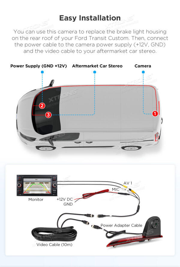 This camera is specifically designed for the Ford Transit Custom. It integrates seamlessly with your vehicle while preserving its unique charm and aesthetics.
