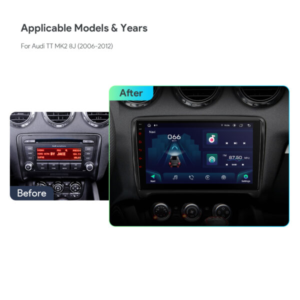 Android Octa Core 4GB DDR4 RAM + 64GB Solid State ROM 9” 1280×720 HD IPS Screen Car Stereo Multimedia Player GPS Navigation System with Integrated global 4G Solution Built-in CarPlay & Android Auto DSP High Power TDA7851 Amplifier USB Tethering Dual UI TDA7708 RDS Radio Support AHD Camera Custom Fit for Audi TT