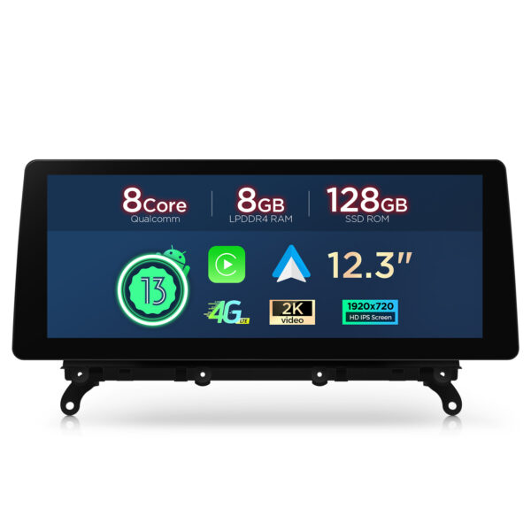 12.3″ Fully Laminated HD IPS Screen Android 13 Octa-Core 64Bit Qualcomm 680 Processor 8GB + 128GB ROM Car Multimedia Navigation System with Built-in 4G Built-in Wireless CarPlay/Full-featured Android Auto Custom Fit For BMW X3 F25 with CIC System